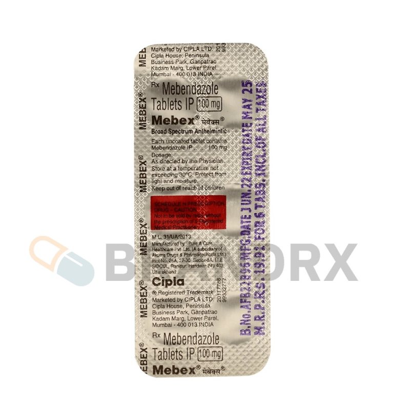 | الجرعة (طبية) | 100 مجم مرتين يوميًا لمدة 3 أيام للبالغين والأطفال فوق عامين لعلاج الديدان الدبوسية والديدان المستديرة والديدان الخطافية |